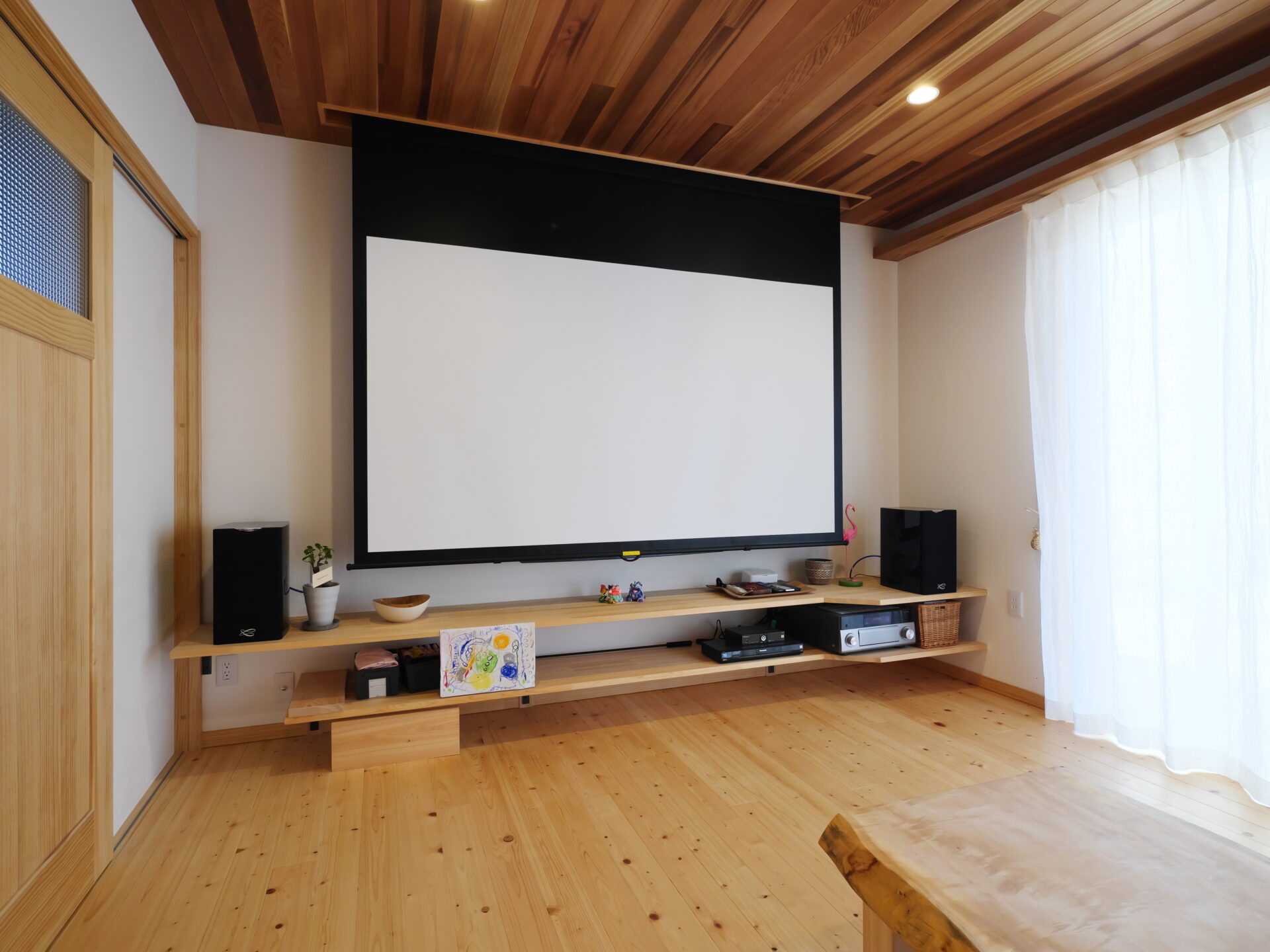 家族や友人とみんなで楽しめるホームシアターのある住まい ホームシアターがあることで、一人でゆっくり映画鑑賞をすることが出来ます。また、親戚や友人を呼び、大人数で一緒になって楽しむことも出来る住まいです。