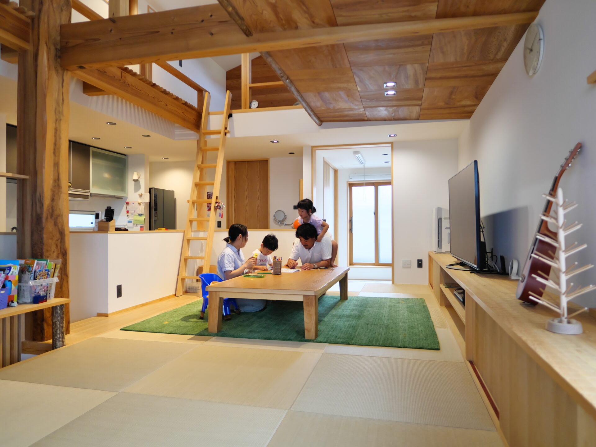日本人が落ち着く和室を部屋の一角ではなくメインとしてスペースを確保することで家族全員でくつろぐことができる住まいです。