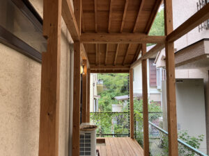 またテラスの下には屋久杉のウッドデッキの施工もしており、こちらも柿渋で塗装しています!