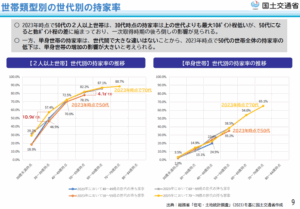 単身世帯の世代別・持家率の推移が詳しく示されています。