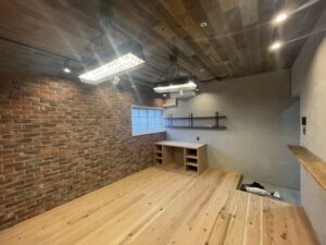 ブルックリン風な内装仕上げでレンガタイルやモルタルなどで壁を仕上げたりさせて頂きました!
