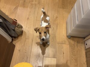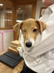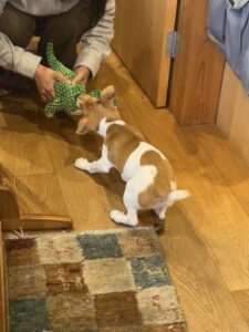 まだまだ子犬なので、ケージの中で過ごしていることが多いので