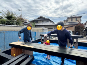 先日お施主様と土台の墨塗り(アンダープロテクトの塗布)を行いました🪵
