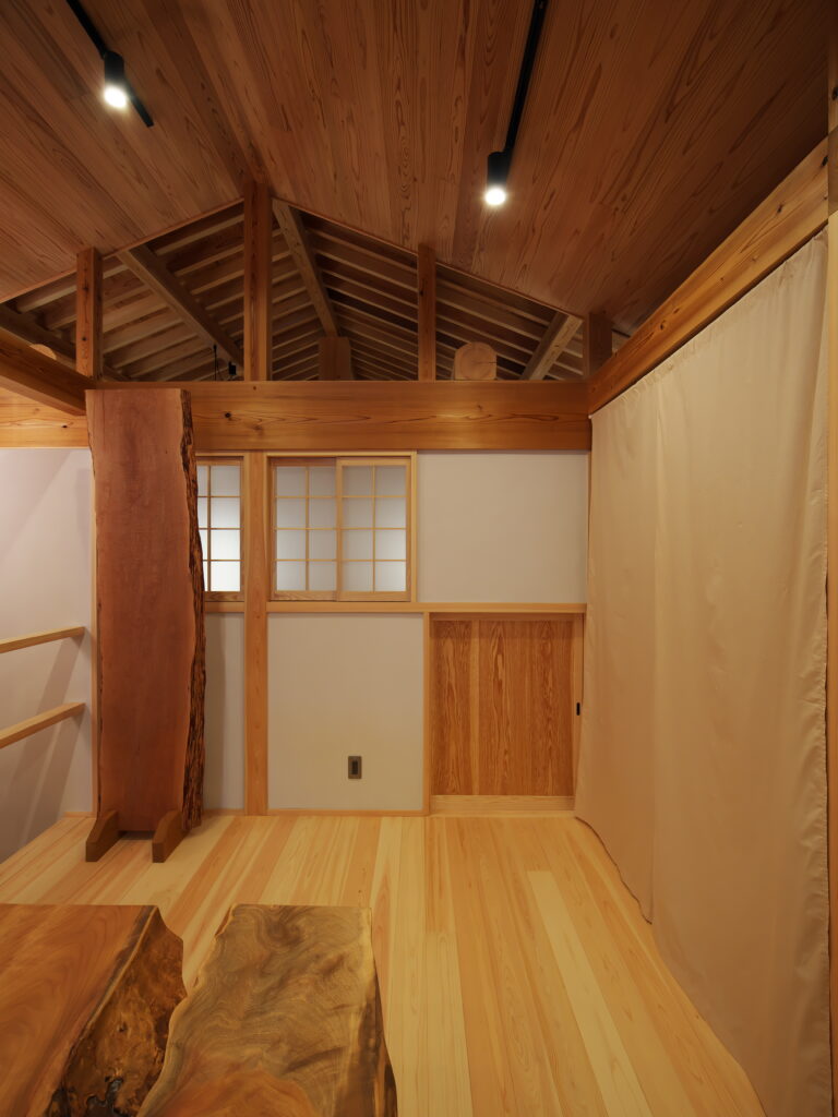 吉野杉の穏やかな赤みと桧のやわらかな白が調和する、落ち着いた空間に。