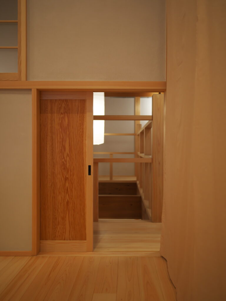 やわらかな光を求め、窓には杉板の戸板を造作。
